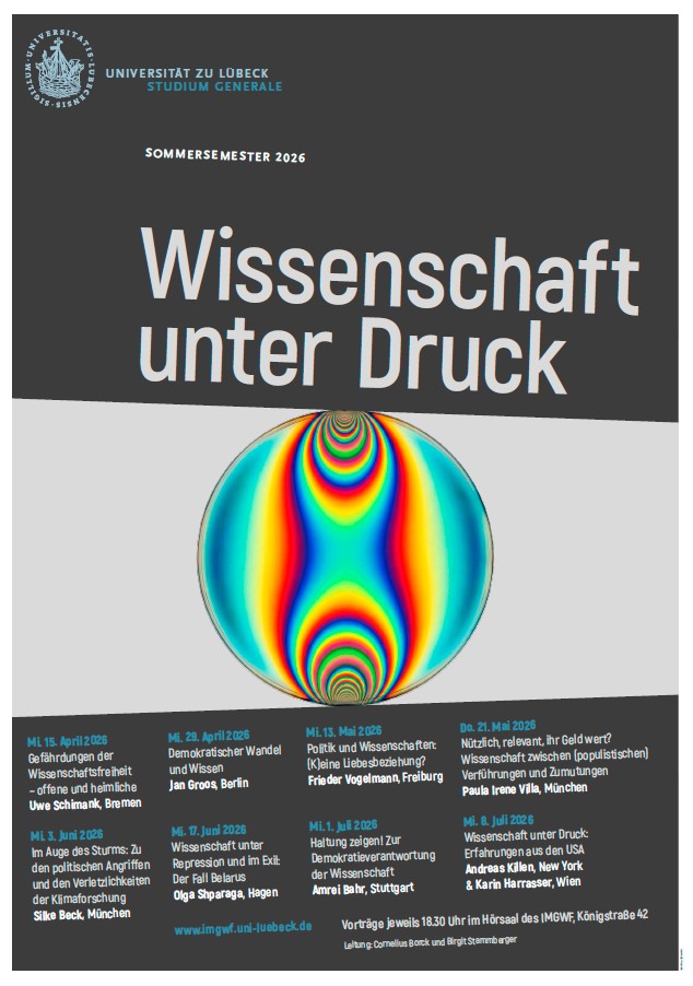 Vorträge jeweils um 18:30 Uhr im Hörsaal des IMGWF/ZKFL (Königstr. 42, 23552 Lübeck). Der Eintritt ist frei, eine Anmeldung ist nicht erforderlich.