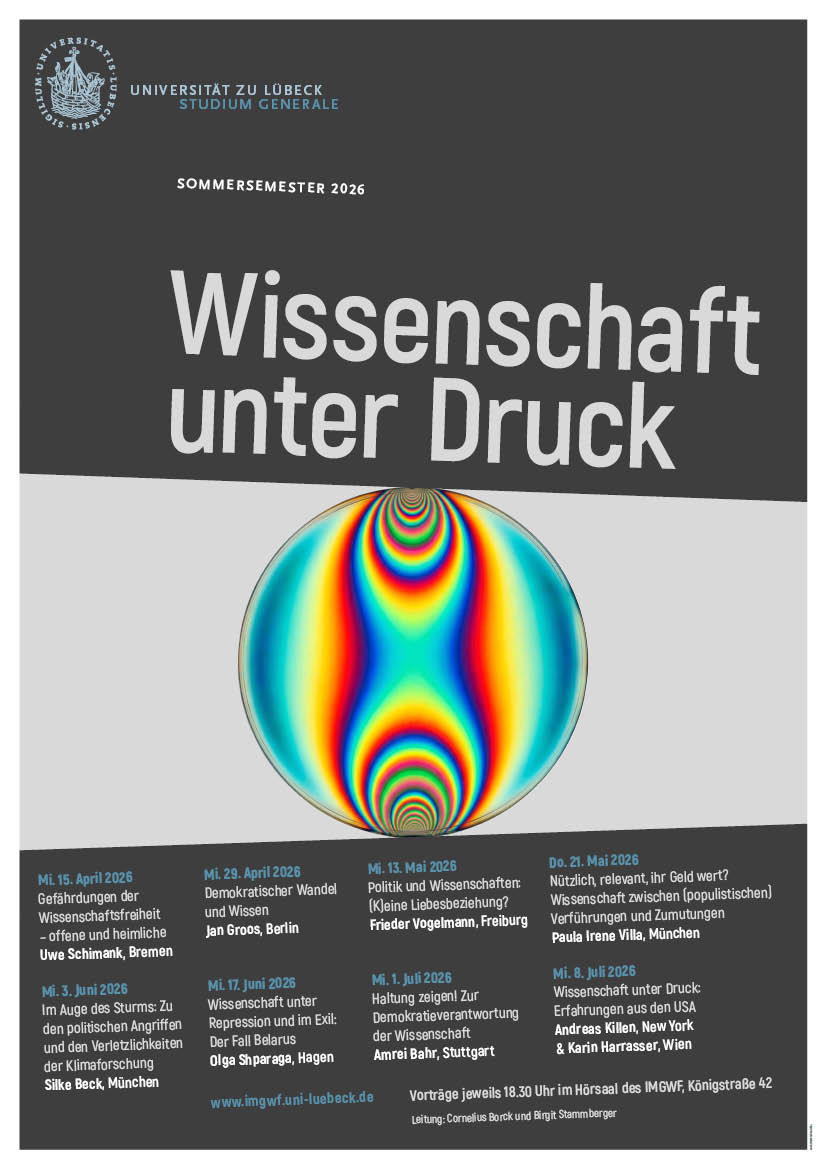 Vorträge jeweils um 18:30 Uhr im Hörsaal des IMGWF/ZKFL (Königstr. 42, 23552 Lübeck). Der Eintritt ist frei, eine Anmeldung ist nicht erforderlich.